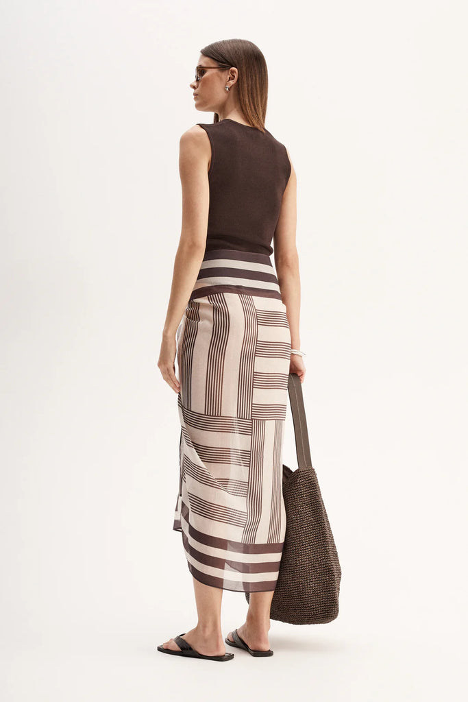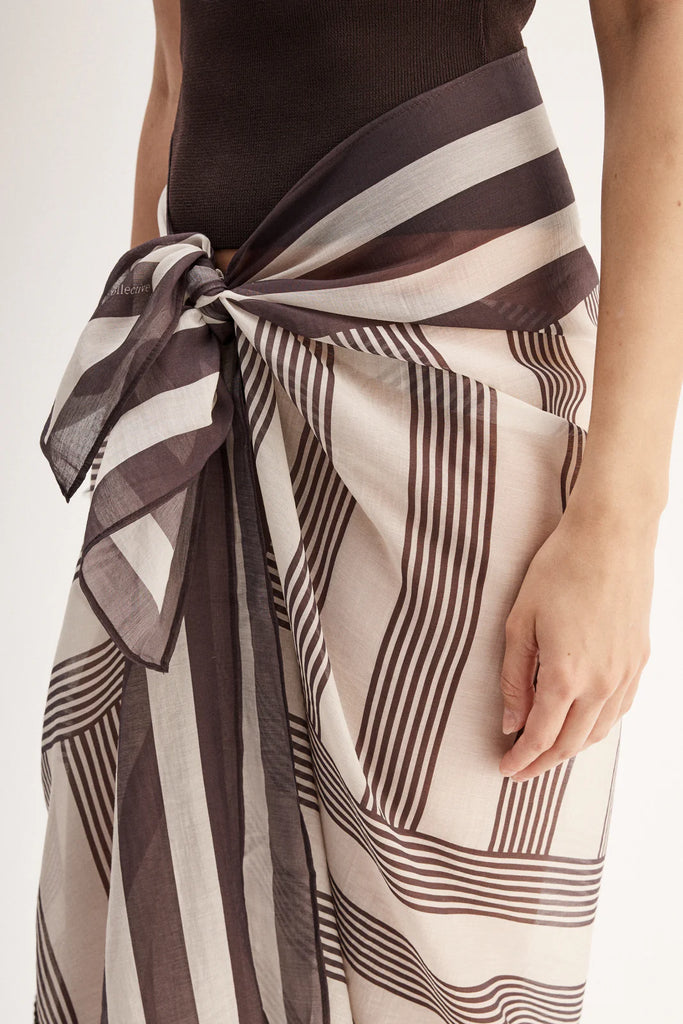 Made of a soft, semi-sheer fabric with a bold contrasting stripe print, the Pierre Sarong is a sleek and contemporary summer accessory. Ideal for beach and poolside layering, this piece is a vacation staple.