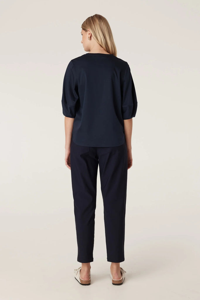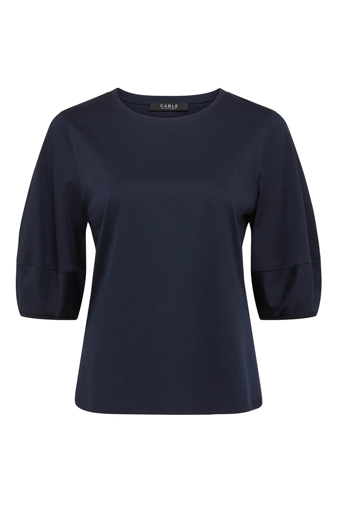 Pima Lantern Sleeve Top - Navy