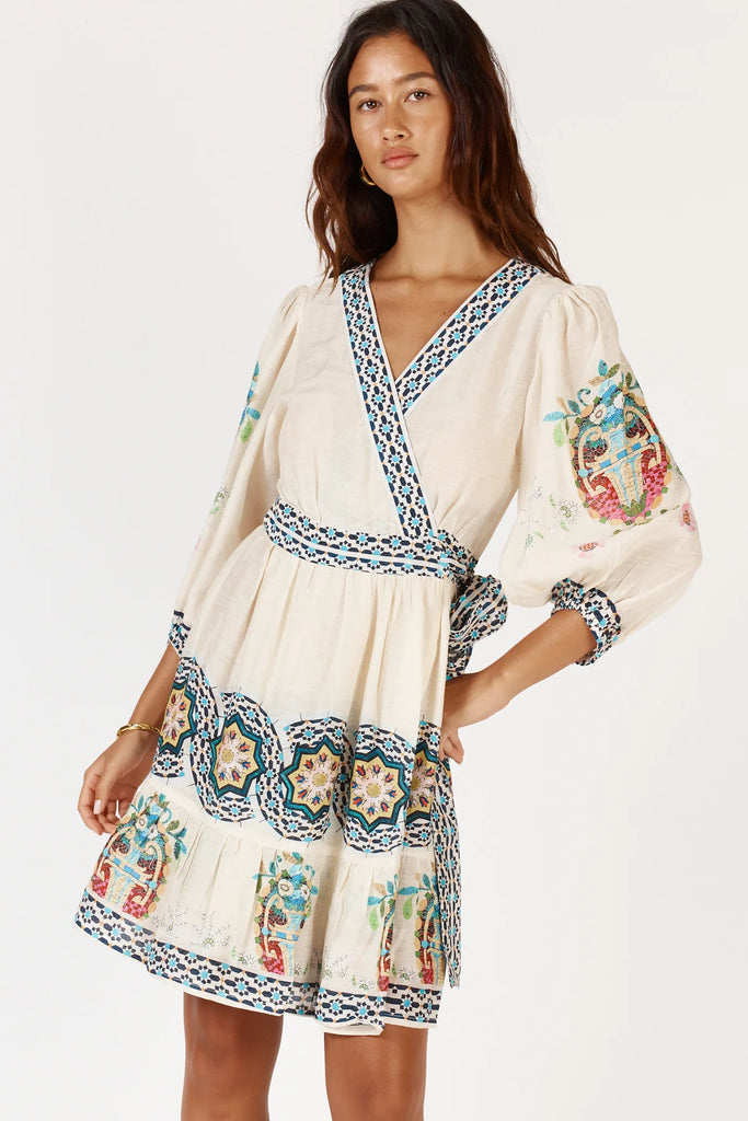 The ¾-length sleeves with elasticated openings add a touch of sophistication and practicality, making it ideal for transitioning between seasons. Designed for effortless wear, this dress combines breathable natural fabrics with a flattering silhouette that moves with you.