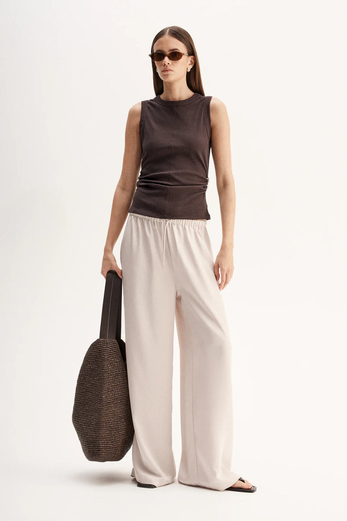 A sleek trans-seasonal piece, the Charlie Top is made of a soft ribbed fabric with a regular fit. This top is accentuated by exposed seam and chrome hardware detailing. Pair with tailored pieces for an effortless day to night outfit.
