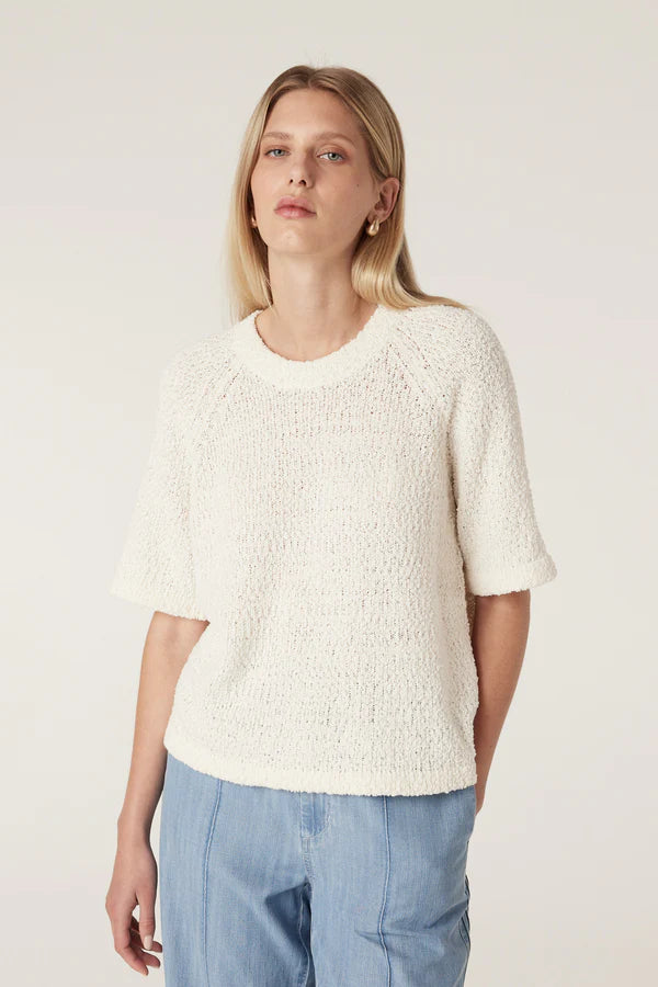 The Boucle Knit Crew Top is a regular fit, medium-weight knit featuring raglan sleeves. Crafted for everyday comfort, it is designed with a textured boucle finish and a clean crew neckline.