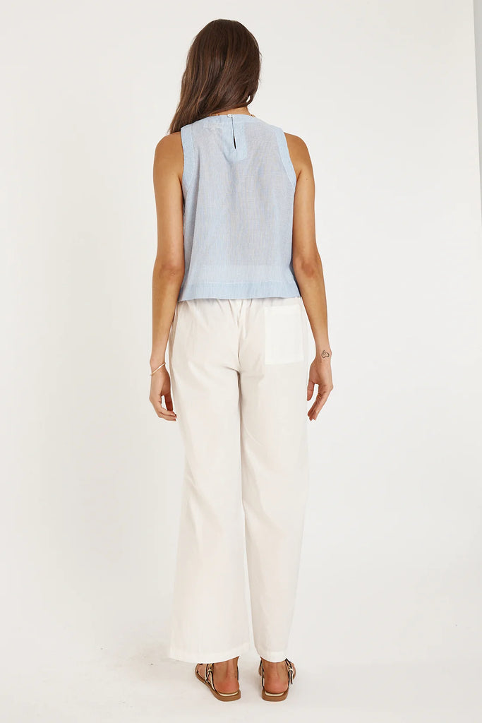 Crafted from pure cotton, this refined tank features delicate embroidered detailing that elevates its understated elegance. The distinctive back opening adds an unexpected design element, creating visual interest while maintaining a polished aesthetic. Perfect for layering or wearing as a standalone piece, this versatile garment seamlessly transitions from day to evening wear.