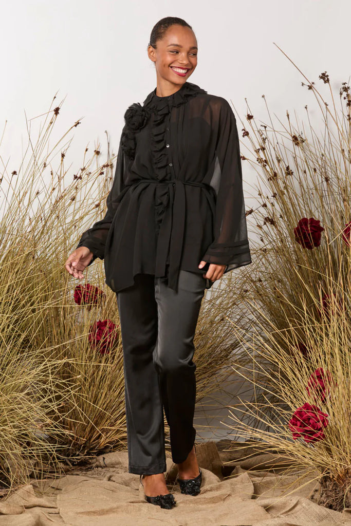 The Darling Pant is a mid- to high-waisted pant with a straight-leg silhouette, offering a sleek and polished finish. Crafted for both elegance and versatility, it features a concealed zip closure, functional side pockets, and belt loops for styling options. The slim fit flatters the figure, while sizing up provides a slightly more relaxed fit, making it perfect for refined daywear or elevated evening looks.